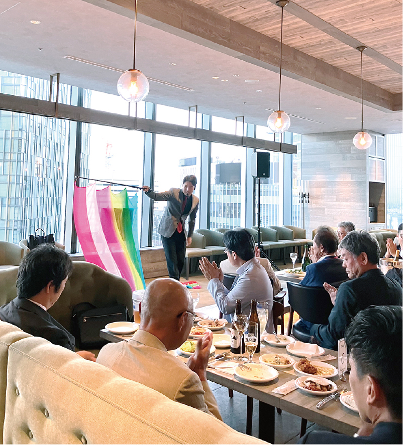 その後の懇親会では、マジックショーを2部構成で開催し、1回目はステージで、2回目では各テーブルを回って至近距離でのマジックを披露していただきました。驚きと笑顔に包まれたひとときとなり、会員様同士の交流も深まりました。