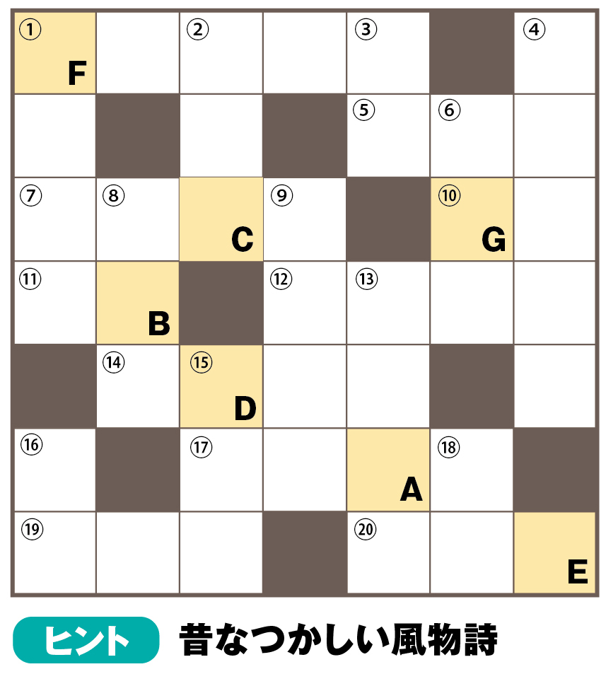 たて・よこのキーワードをもとにマスを埋めてA〜Gに入る言葉をつないでください。