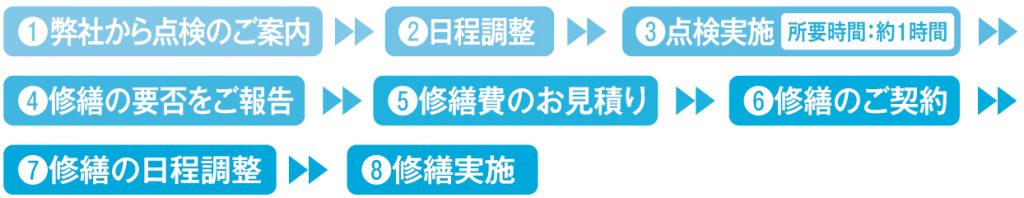 ■点検〜修繕メンテナンスまでの流れ▶︎▶︎▶︎