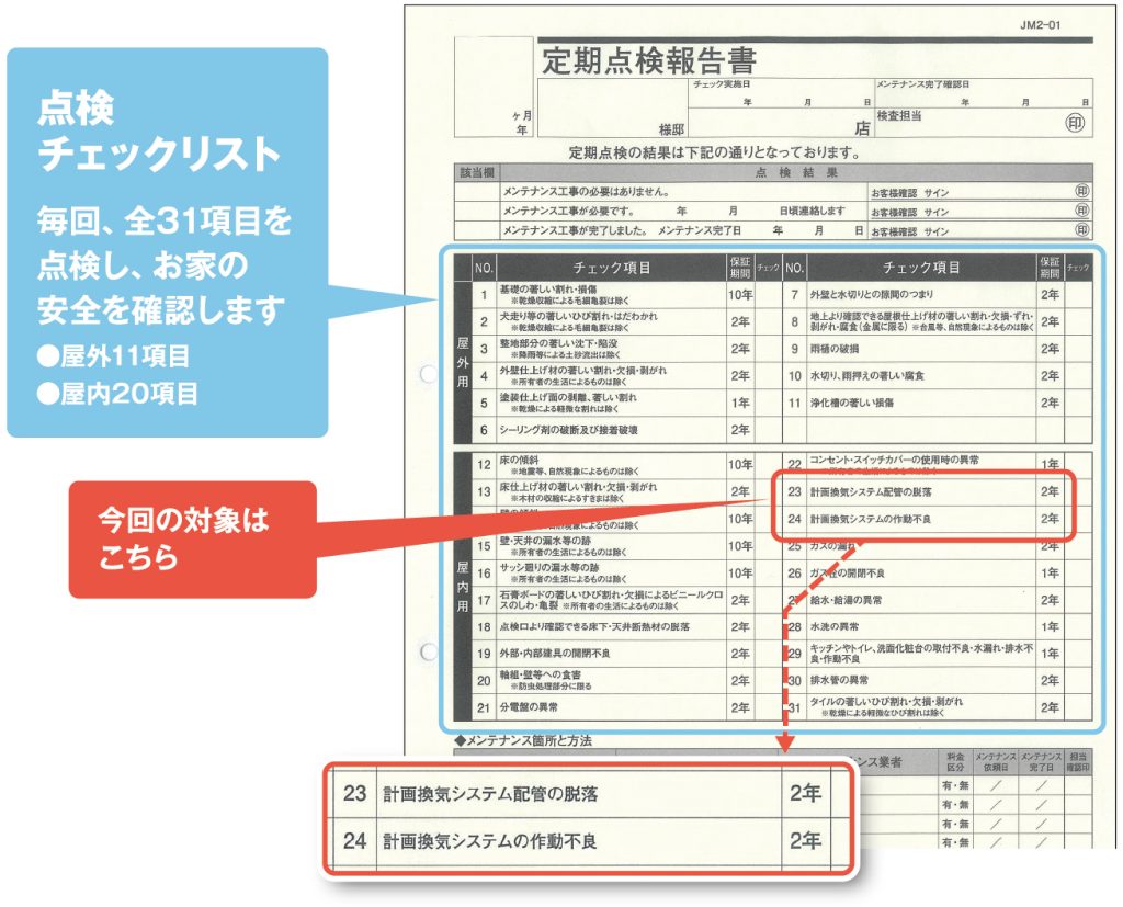 当社ではお引き渡し後、節目のタイミングでお住まいの点検に伺います。(計8回)無償点検