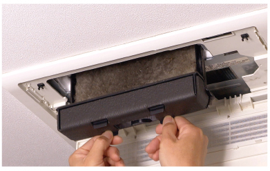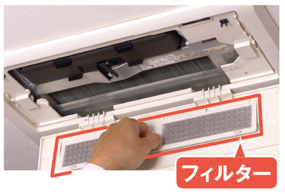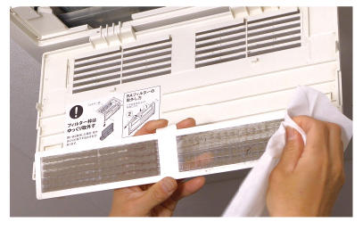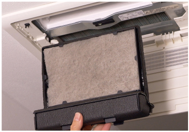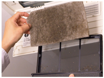 こちらは室内で発生したホコリを防ぐためのフィルターです。汚れを掃除機で吸い込むか、タオルなどで拭き取りましょう。