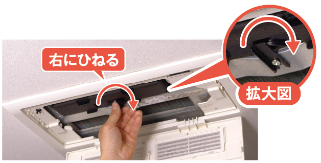 4.フィルターの表裏を確認し、枠にはめ、本体に戻す。