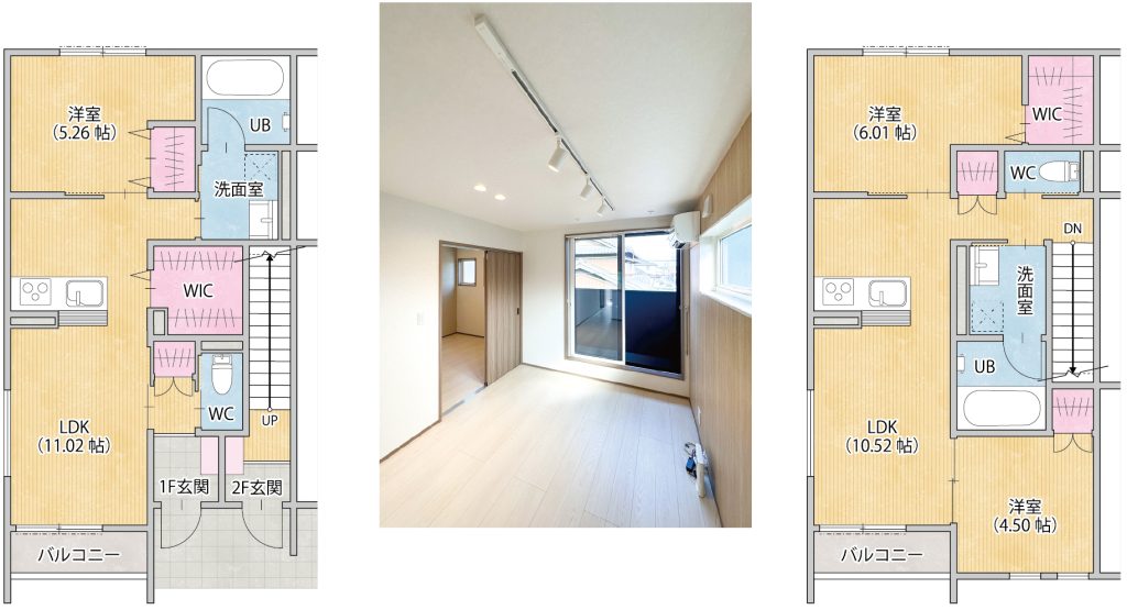 (左)101号室 1階/42.20㎡ (右)201号室 2階/53.93㎡