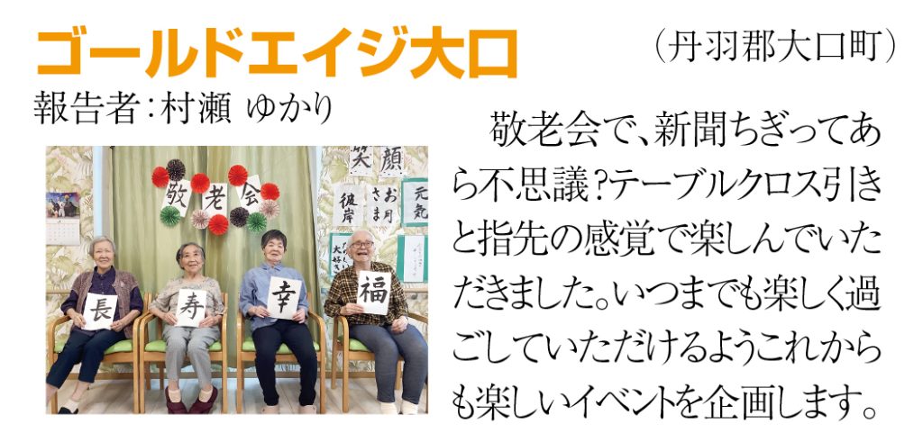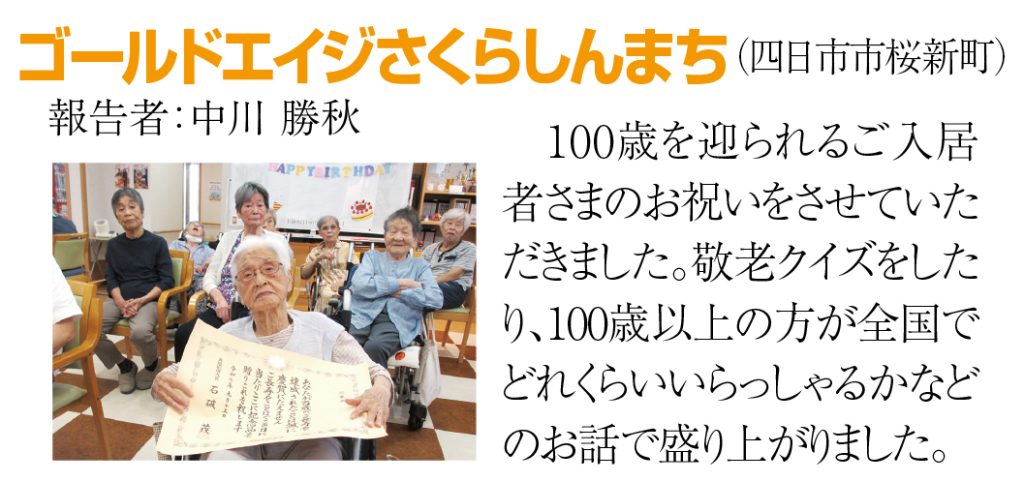 さてどうでしょう。ゴールドエイジでも部屋を出る時に『ありがとうございました』と言ってみてください。入居者様はきっと感動されます。できれば実行してください。私も感動してしまいましたので是非お願いいたします。