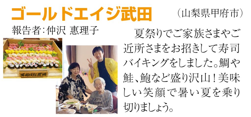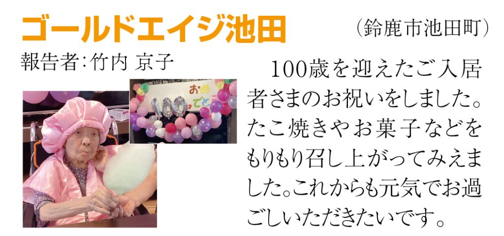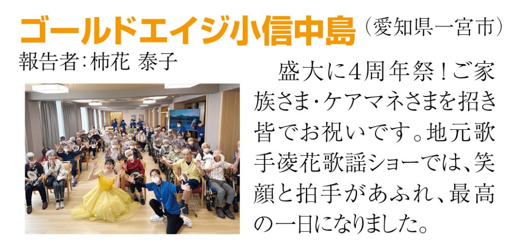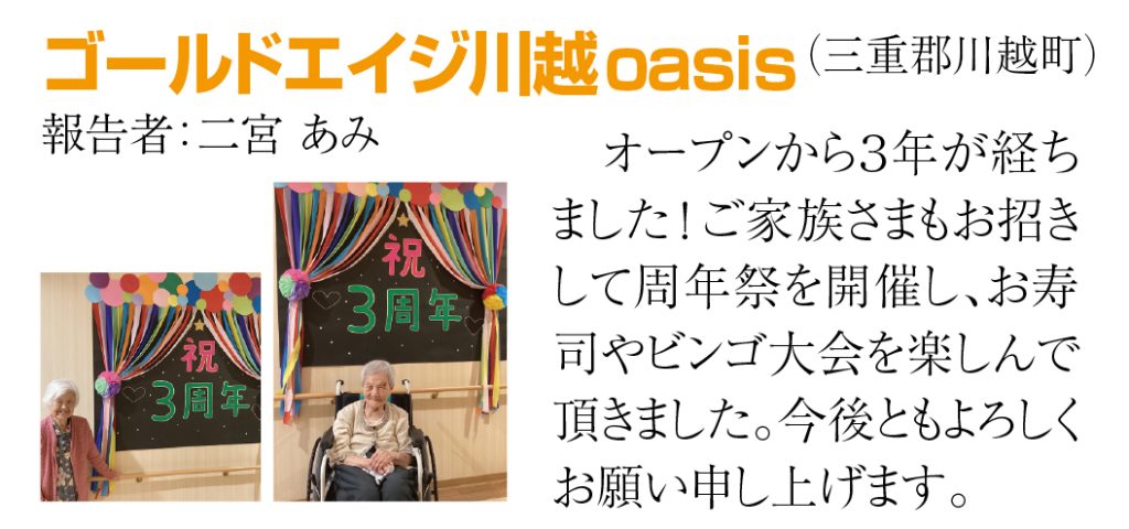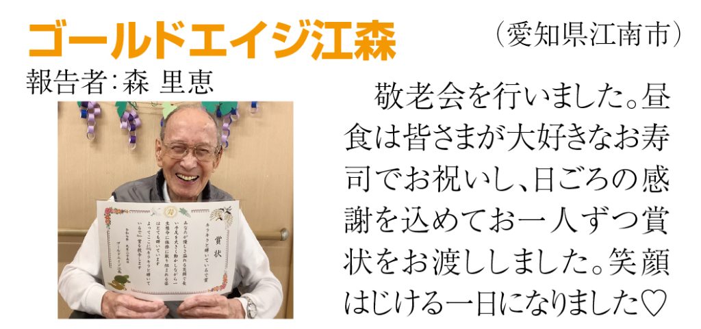 ②もう1つの成功の理由は、ゴールドエイジの全スタッフ『1,433人』の努力ではないでしょうか。けっして派手な仕事ではありませんがコツコツと毎日の正しい努力の積み重ねで全国6位になったのです。これは間違いありません。『一人ひとりに寄り添ったチームケアで、人生最高の暮らしにする』という理念・ミッションが一人ひとりの社員さんに浸透しているのです。高齢になられた入居者様は長い人生を過ごされていて喜びも悲しみもご苦労も体験されました。そしてゴールドエイジに入居していただきました。だから全員の入居者様にここでの生活が『人生最高の暮らし』だと言っていただくことだけを目標にしてこれからも努力したいと思います。