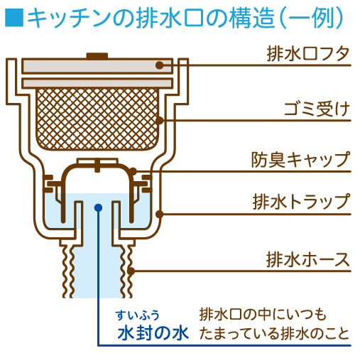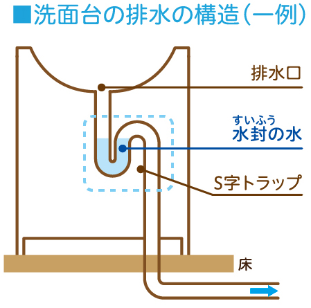 ※水を勢いよく流すと、封水の水が引っ張られて、なくなってしまうことがあるため(サイホン作用)、ゆっくりと流すようにしてください。