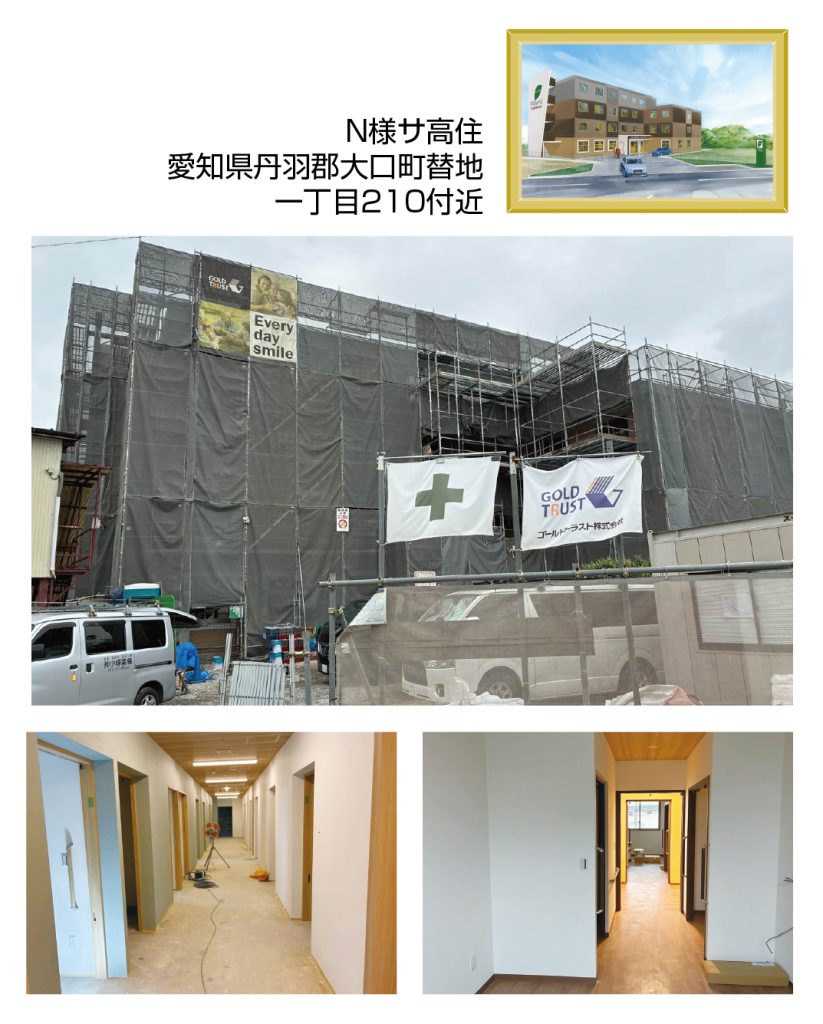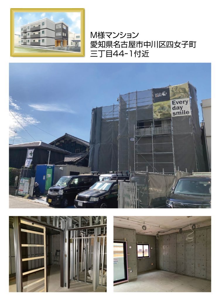 ゴールドトラスト資産形成事業部では、『生活の未来を創る』をコンセプトにマンション・サ高住を土地探しから、デザイン・施工〜アフターフォローまで行っております。入居者様の満足を基準にこだわりご成約頂いた物件の中で、現在建築中の建物をご紹介いたします。お近くへ行かれる際に是非足をお運びください。