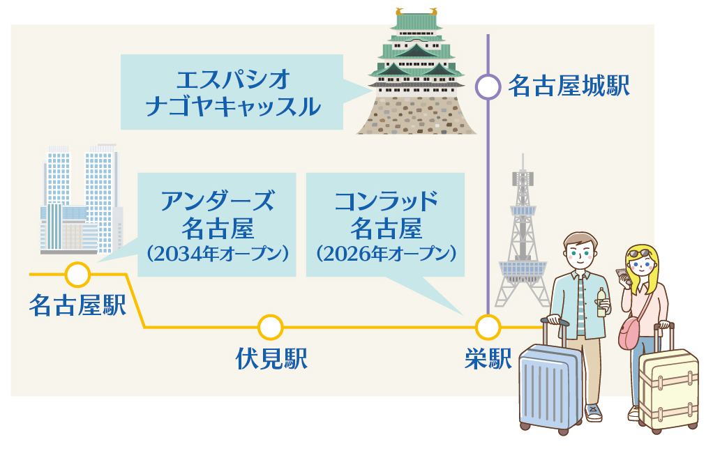 今回の「エスパシオナゴヤキャッスル」のオープン、さらに2026年夏には栄エリアに「コンラッド名古屋」のオープン、2034年には名古屋駅エリアに「アンダーズ名古屋」のオープンが控えており、いよいよ名古屋に高級ホテルが相次いで開設予定となっています。