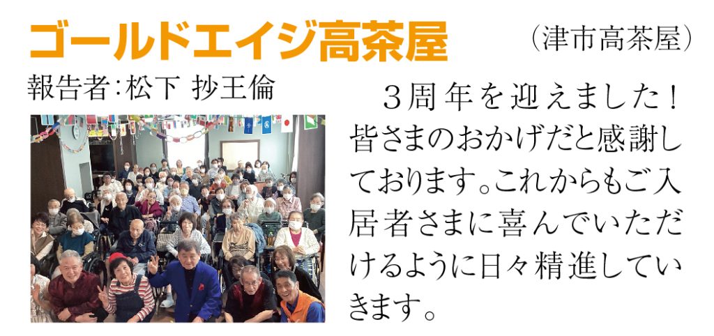 この頃私がびっくりするのは介護の現場がどんどん自主的に改善されている事です。①各館の館長さんはそれぞれの館を見違える程に良くしてくれています。入居率やシフトや社員募集などの改善や、館長のこころを書いて自分の思いをスタッフに伝えています。毎日毎日仕事で時間に追われながらも努力を続けてくれています。