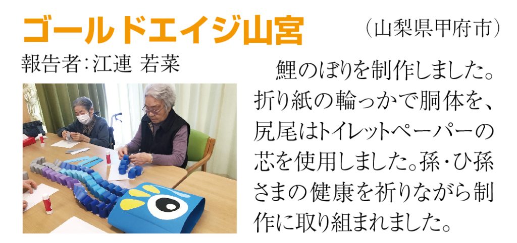 ④これは私の希望なのですが、母子家庭のお母さんを採用して正社員として働いてもらいたい。そして子供さんをゴールドエイジでお預かりして、広いリビングや食堂でテレビゲームをしたりおやつを食べたり。5時からは公文算数教室や英語教室を開いて1・2時間勉強もしてもらいたいと計画しています。そしてお母さんが退社する7時頃に一緒に家に帰れると安心です。やりたいと思います。子供さんが高齢者住宅にいるとそれだけで活気があって楽しいものです。