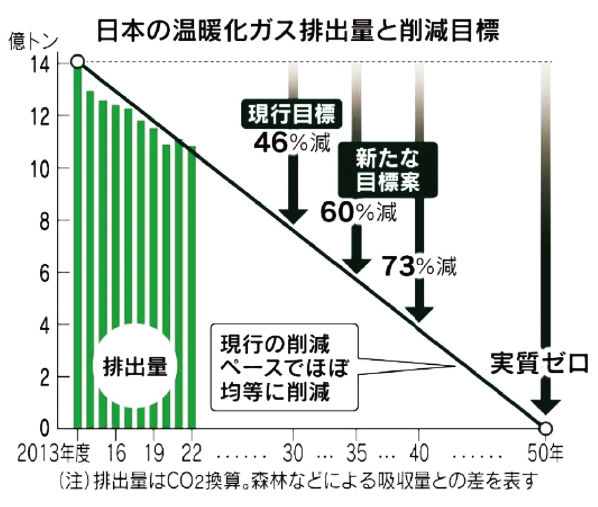 日本は2020年に菅元首相が当時、2050年までにカーボンニュートラルを目指すと表明した事を受けて、2030年時点で温室効果ガスを2013年と比較して46%削減する事を目指していると国連へ提出したという経緯があります。そもそもカーボンニュートラルとは何ぞや?となりますが、簡単に言うと、日本の森林が吸収するであろう温室効果ガスと日本が出す温室効果ガスがイーブンになって、日本は地球の温暖化に寄与していませんよ。というところに持って行きたい。という事だそうです。
