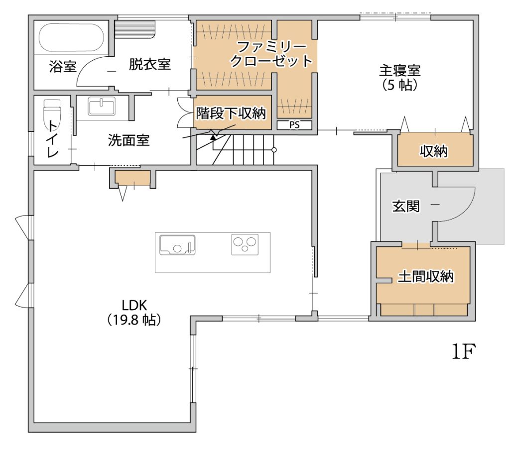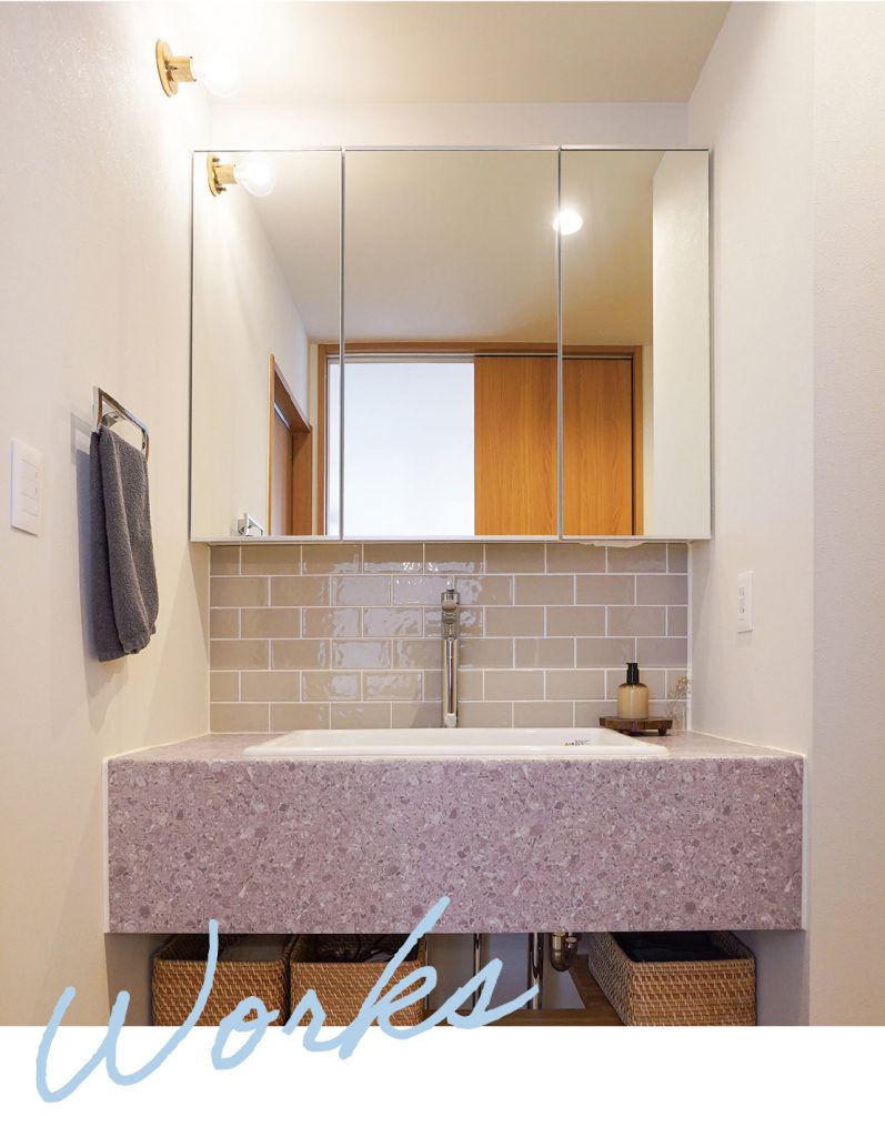 家事のしやすさにもこだわり、1階だけで家事を完結できる間取りを実現。I様のお気に入りは、造作でおしゃれに仕上げつつも、病院用シンクの採用により、靴洗いなどにも十分な広さを兼ね備えた洗面台。たくさんのこだわりの詰まった住まいです。