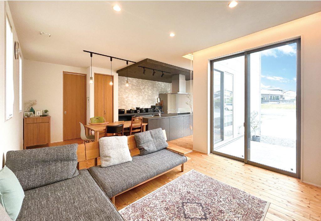 LDKに沿ってL字型に配置された大窓は、たっぷりの陽光を取り込み、柔らかい明るさをつくります。