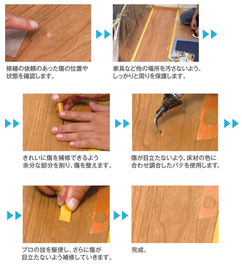 修繕のご契約後、メンテナンスのプロがお家にお伺いし、傷のあった箇所を修繕いたします。