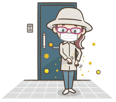 A1:外で着いた花粉は、玄関先で落としてから家の中に入る