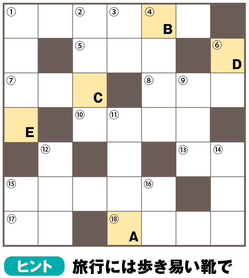 たて・よこのキーワードをもとにマスを埋めてA〜Eに入る言葉をつないでください。