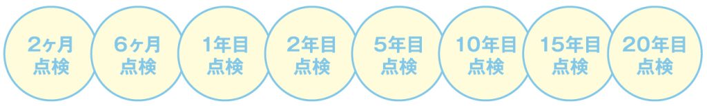 当社ではお引き渡し後、節目のタイミングでお住まいの点検に伺います。(計8回)無償点検