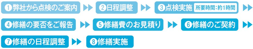 ■点検〜修繕メンテナンスまでの流れ▶︎▶︎▶︎
