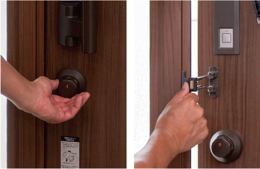 開錠や施錠をする際、スムーズにできるか、引っかかりが無いか、ドアガードの動作等を確認します。
