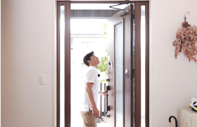 玄関ドアの開閉がスムーズにできるか、バタンとしまったりしないかを確認します。