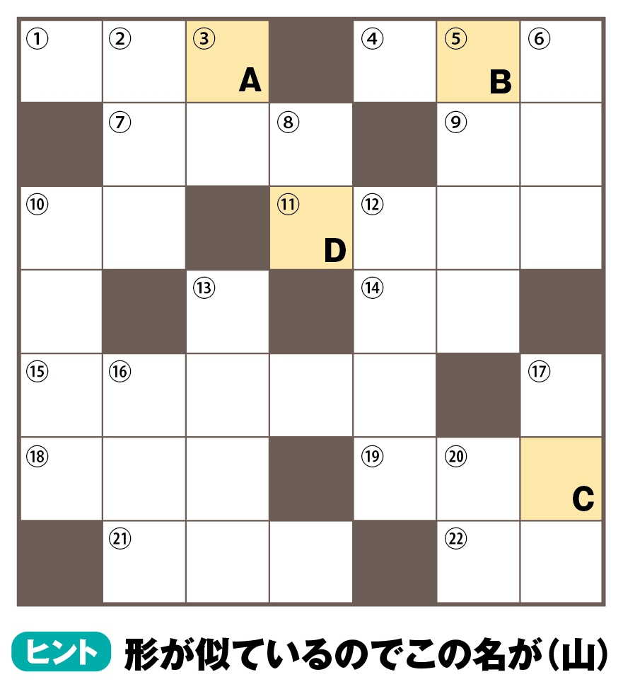 たて・よこのキーワードをもとにマスを埋めてA〜Dに入る言葉をつないでください。